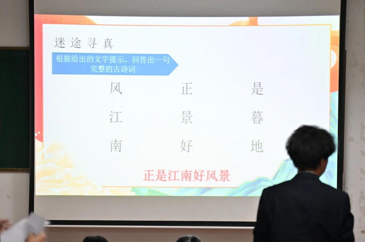 迷途寻真”环节中,宫格文字暗藏诗词线索,要求在20秒内拼凑完整诗句。参赛选手们像拼图般 “打捞” 经典,拼的是速度,更是对诗词结构与内容的精准记忆,创意环节点燃全场热情。